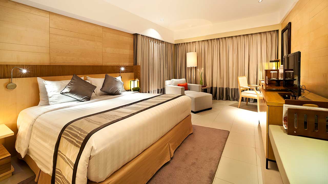Elegan dan fungsional, perpaduan tempat tidur mewah dengan pemandangan menakjubkan. Jika Anda sedang berlibur atau melakukan perjalanan bisnis, maka kamar dengan sentuhan klasik ini sesuai dengan kebutuhan Anda.