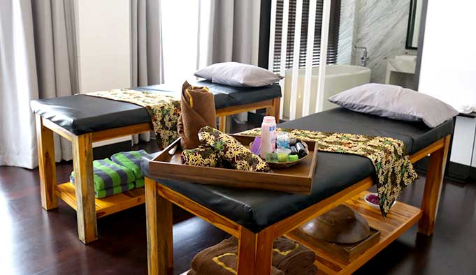 Relaksasikan diri Anda di spa kami dengan suasana tenang dan nyaman yang akan memanjakan Anda dari ujung rambut hingga ujung kaki oleh staf terbaik kami.